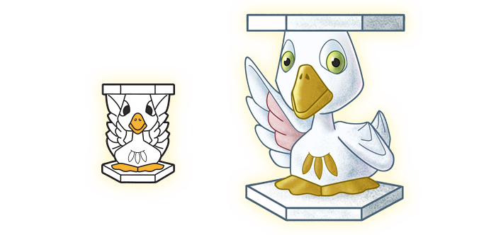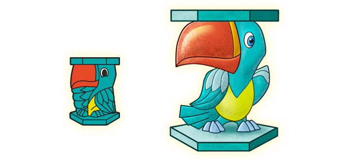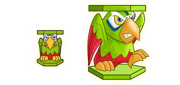 צבעיו הססגוניים ומקורו הגדול מושכים אליו הרבה תשומת לב, אשר מרבה לסבך אותו בצרות. למזלו, הוא ניחן בכישרון הדיבור, ויודע להיחלץ מכל מצב בעזרת תירוץ מוצלח.
