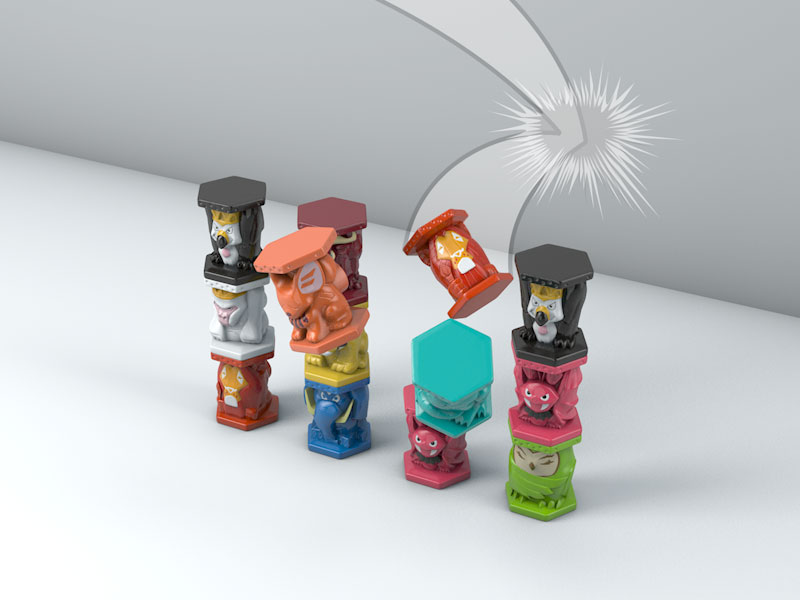 Por exemplo, o primeiro jogador coloca um Abaton com um +1; portanto, o jogador seguinte colocará um Abaton por cima do anterior e assim sucessivamente até que um jogador fique sem Abatons ou que a torre seja derrubada.