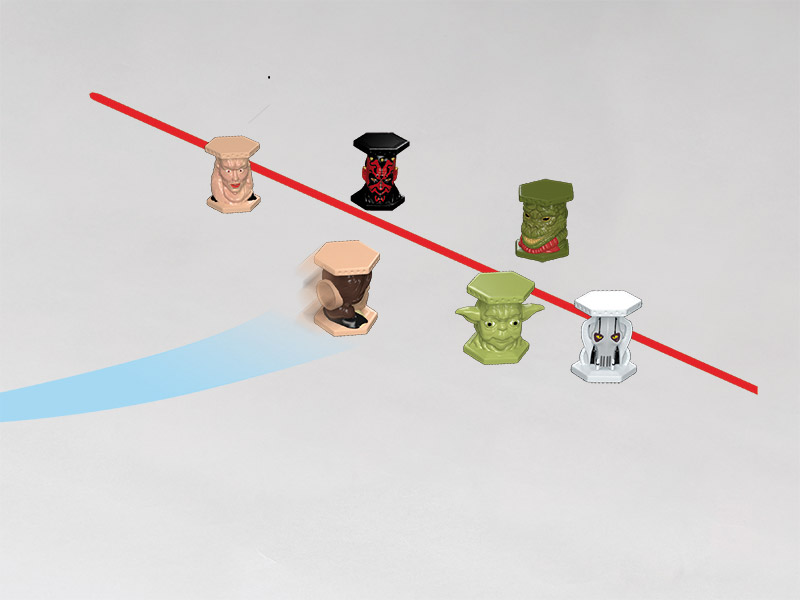 Chaque joueur utilise la Force en faisant glisser un ABATON sur la table. Le but est de renverser les tours de ses adversaires. Si vous y parvenez, vous gardez les Abatons que vous avez fait tomber.