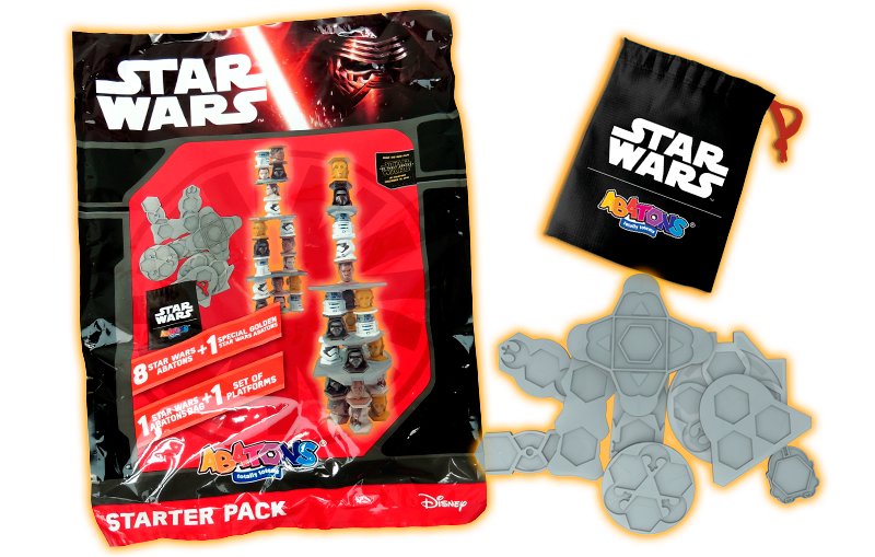 STARTER PACK! Ontdek het geweldige Star Wars Abatons Startpakket, met acht Abatons, een Gouden Abaton, het Abaton-zakje en fantastische verbindingsstukken om je Abatons Star Wars-wereld mee op te bouwen!